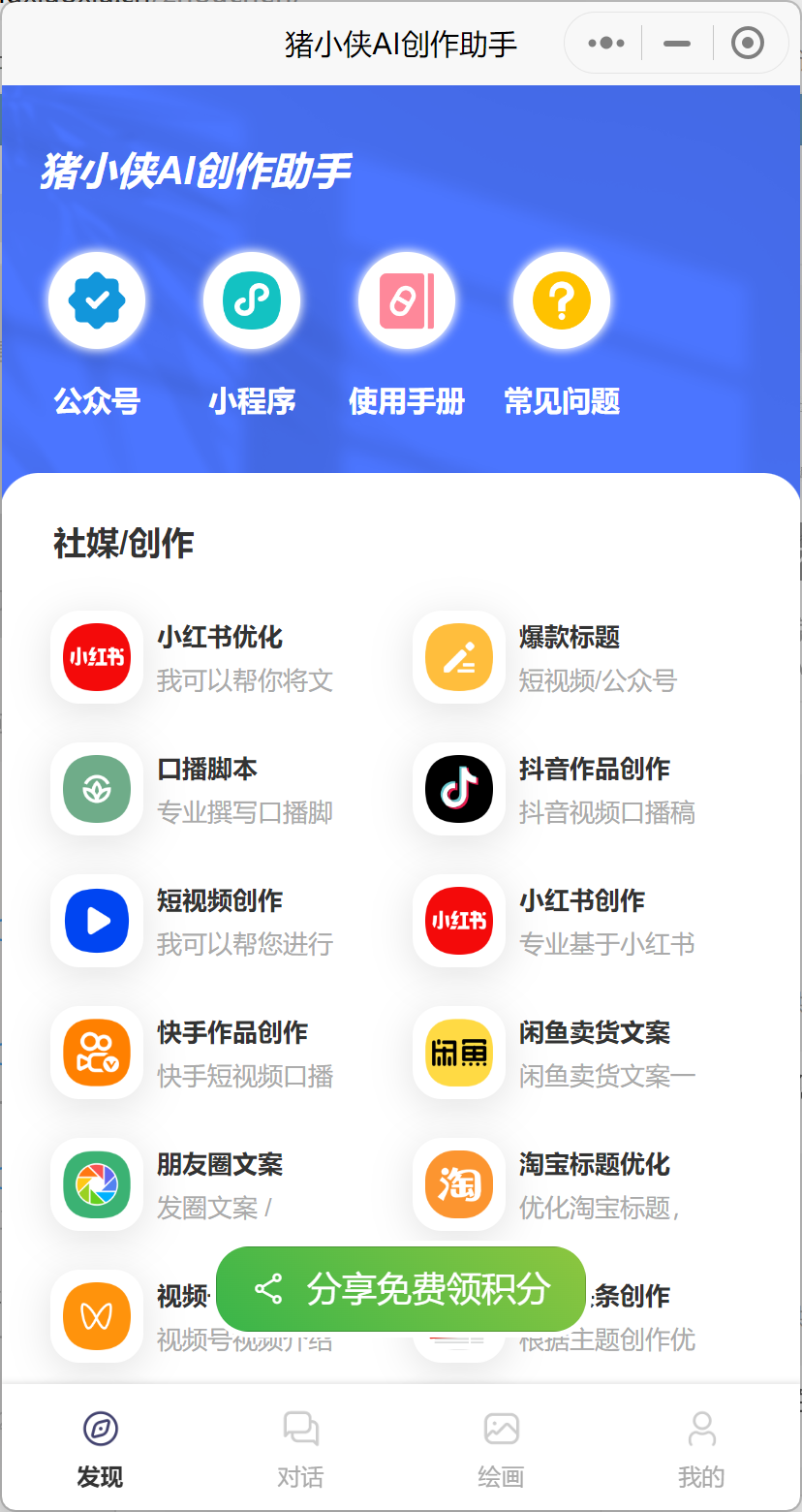 另外本次猪小侠AI创作助手新增了,公众号自动回复功能,大家可以通过公众号的方式进行沟通和提问题,因为目前公众号版本刚刚上线测试,所以可能还不是很稳定,最近也会给完善起来。
